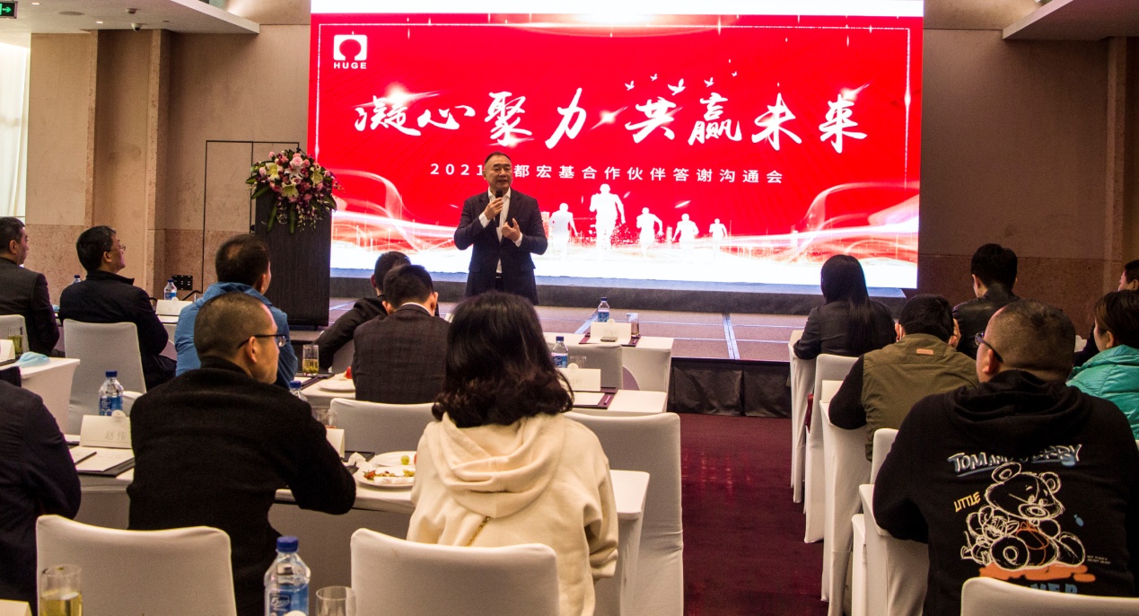 2021年3月25日,成都宏基合作伙伴答謝溝通會在凱賓斯基酒店舉行。公司董事長兼總裁吳逸云先生攜高管團隊、物資、生產(chǎn)系統(tǒng)同事出席,近七十位供應(yīng)、服務(wù)合作伙伴應(yīng)邀赴會。