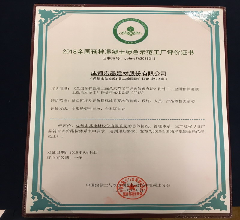 2018年9月13日至15日,由中國混凝土與水泥制品協(xié)會預(yù)拌混凝土分會主辦的“第二屆預(yù)拌混凝土工廠智能制造和裝備設(shè)施綠色環(huán)保升級高峰論壇”在上海舉行,設(shè)備管理部經(jīng)理肖斌武、技術(shù)質(zhì)量部副經(jīng)理何科文代表公司參加了會議。本次會議頒發(fā)了成都宏基建材股份有限公司“2018全國預(yù)拌混凝土綠色示范工廠”的證書。全國范圍內(nèi)評定了51家達(dá)標(biāo)企業(yè)。這是對公司長期以來在綠色、智能、低碳、循環(huán)、可持續(xù)性發(fā)展等方面的肯定。成都宏基將以此為新起點,在綠色生產(chǎn)方面繼續(xù)努力,不斷前行,實現(xiàn)我們“成為基業(yè)長青的綠色生產(chǎn)商”的企業(yè)愿景,為建設(shè)更美麗更宜居的城市作出自己的貢獻(xiàn)。