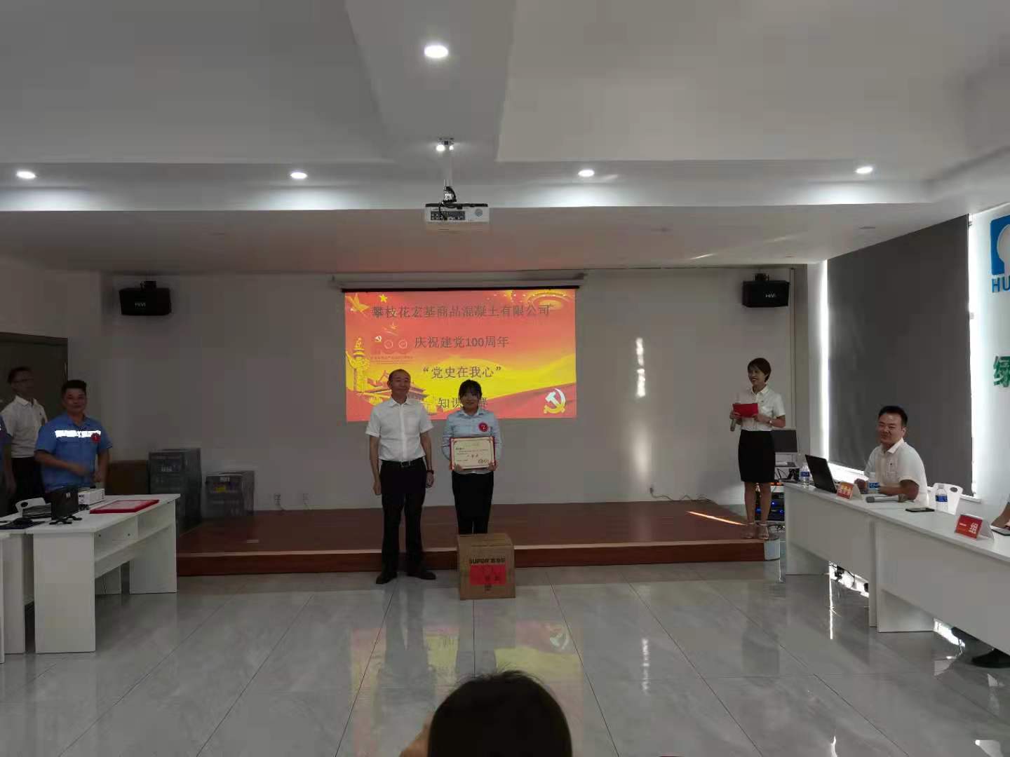為慶祝中國共產黨成立100周年,重溫黨的光輝歷史,繼承和發(fā)揚黨的光榮傳統(tǒng),激發(fā)愛黨愛國熱情,2021年06月29日下午4點,攀枝花宏基商品混凝土有限公司黨支部與工會聯(lián)合組織舉辦了“黨史在我心”黨史知識競賽。