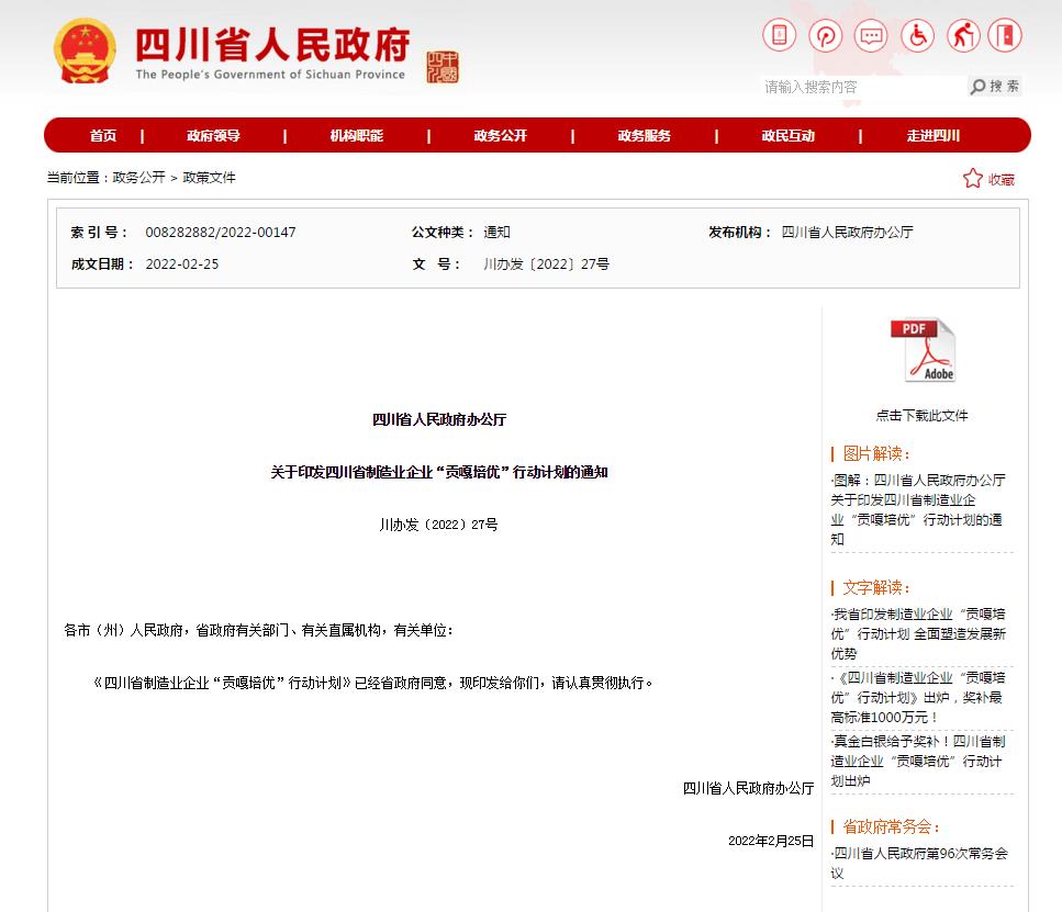 經(jīng)企業(yè)自主申報、省國資委和各地區(qū)經(jīng)濟和信息化主管部門初核推薦、專家評審,四川省經(jīng)信廳于2022年3月16日公示了四川省制造業(yè)“貢嘎培優(yōu)”100戶企業(yè)名單。根據(jù)《四川省制造業(yè)企業(yè)“貢嘎培優(yōu)”行動計劃》,將給予入圍企業(yè)多方面的政策支持,助力其做大做強,實現(xiàn)可持續(xù)高質量發(fā)展。