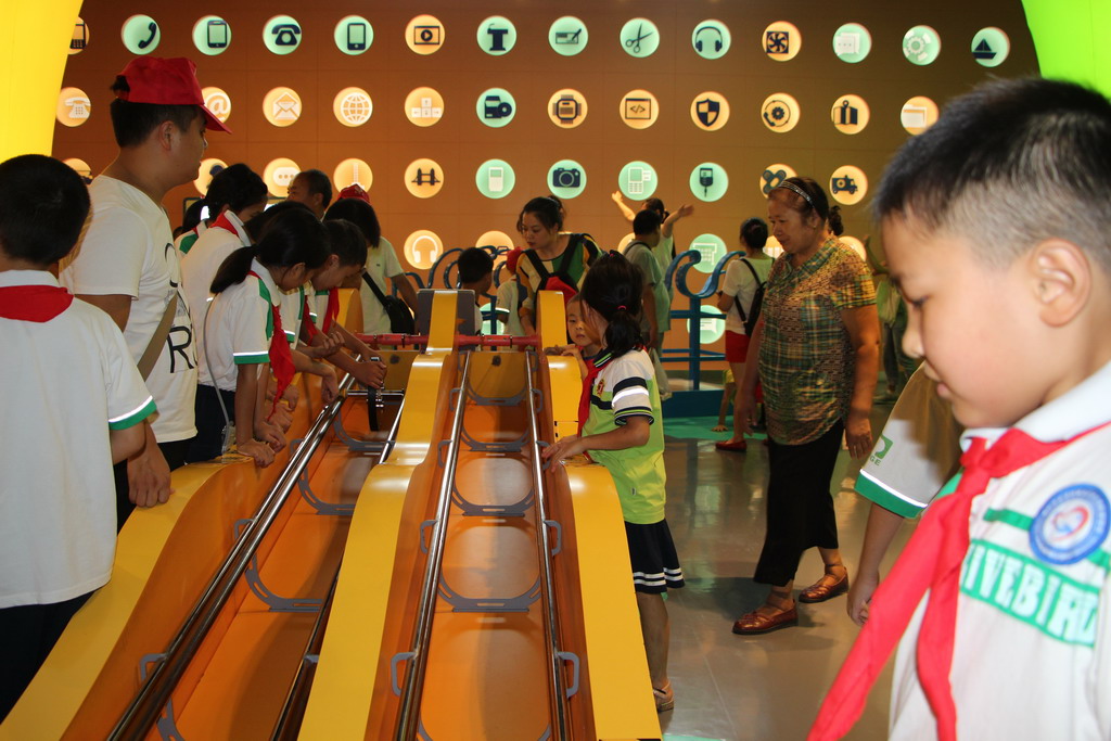 上午10:00,宏基志愿者們按照約定時(shí)間早早到達(dá)天府廣場(chǎng),等待農(nóng)云小學(xué)的師生們。低年級(jí)的學(xué)生由志愿者一對(duì)一帶領(lǐng),高年級(jí)的學(xué)生們則5人一組。剛開始大家有些生疏,但孩子們的可愛,志愿者們的熱情,逐漸讓氣氛暖起來。大家手拉手,依次排隊(duì)進(jìn)入科技館。科技展區(qū)共五層樓,館內(nèi)分航空航天、生命科學(xué)、好奇生活、聲光電、生態(tài)與環(huán)境等多個(gè)展區(qū),剛?cè)腽^內(nèi),首先看到的便是航空航天展區(qū),孩子們都十分興奮,對(duì)館里面的一切都感到好奇,積極的問志愿者:“這是飛機(jī)嗎?有這么大嗎?”“那又是什么?”志愿者們都一一耐心解答,科技館內(nèi)樂趣十足,志愿者和孩子們互動(dòng)默契,時(shí)間過得很快,轉(zhuǎn)眼到了午飯時(shí)間,大家都意猶未盡。