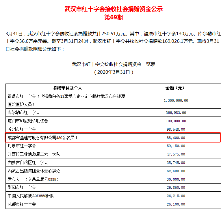 2020年年初,新冠肺炎疫情波及全球,各行各業(yè)均停工停產(chǎn)共同抗擊病疫,成都宏基作為一家有社會(huì)責(zé)任擔(dān)當(dāng)?shù)钠髽I(yè),大年初六接政府抗疫指揮部急需商砼建設(shè)醫(yī)療設(shè)施的通知后,公司克服諸多困難急招部分員工到崗復(fù)產(chǎn)全面保障了抗疫建設(shè)需求。隨即公司又向成都市、區(qū)各級(jí)紅十字會(huì)捐贈(zèng)人民幣50萬元。