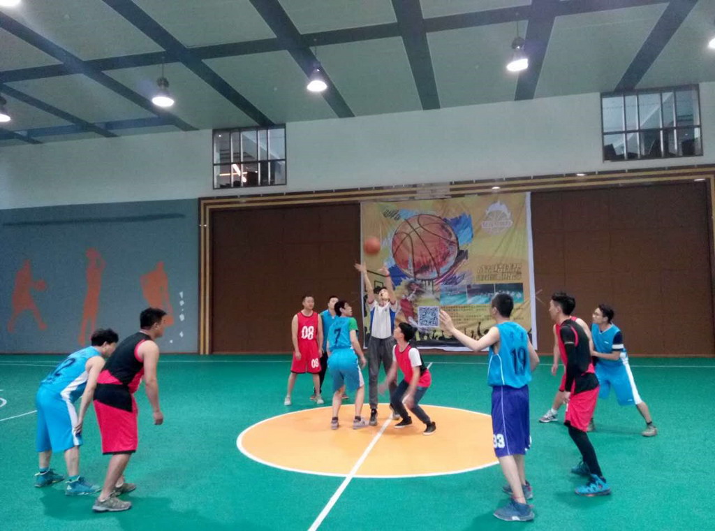 隨著裁判一聲哨響雙方隊員迅速投入到比賽中,首先是宏基隊高個子孟廣軍搶到開場爭球拿到了第一個進攻機會,地鐵隊不甘示弱,圍追堵截積極防守,雙方球員在場上你爭我奪每個動作都爭鋒相對,由于宏基隊的隊員是由公司各站隊員中組成,平時一起磨合較少第一小節(jié)以地鐵大比分領先,在比分落后的局面下領隊和隊長積極做出應對策略和人員調整,第二小節(jié)我隊由身高臂長的孟廣軍和彈跳非凡的向海林打中鋒讓我們拿到多數籃板球,調整后大家逐漸找到感覺傳球分球游刃有余,王松的定點命中,羅亞紅憑著良好的控球技術移動投球多次得分,精彩鏡頭不斷上演,也把比賽推向了高潮,在攻防互換的幾個回合后我隊逐漸把比分追上,到第三小節(jié)結束打到39:36,我隊追到僅有3分的差距了。第四節(jié)雙方體力消耗都很大情況下這個微小差距最后到底鹿死誰手還真難說,在大家一起商量后雙方把隊長派上場,一開場我隊隊長甄永峰就得到球一技帶球過人突圍上籃得分行如流水一氣喝成,就把對手僅有的3分優(yōu)勢終結掉了,也大大提升了我們的士氣,此時比賽推到頂峰,對手也是吹響集結號,全場緊逼,極力反攻,此時比分交替上升,場上的激烈贏得場下觀眾激烈掌聲,就在這防守進攻,你來我往的回合中比賽時間進入倒計時,直到終場的哨聲響起比分定格在了53:53。雖然在比賽過程中雙方你掙我奪,爭鋒相對,但賽后大家熱情的握手和洋溢在臉上笑容已化為深深的友誼。