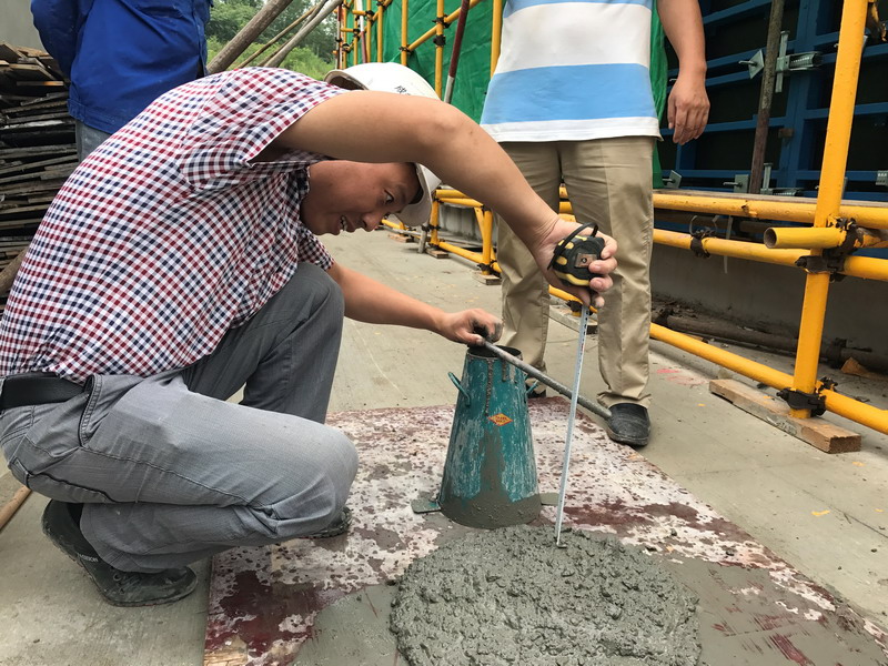 成都麓湖生態(tài)城A2-2地塊房屋建設(shè)欲使用清水混凝土,在建設(shè)前預(yù)先澆筑清水混凝土樣板間,要求使用C30清水混凝土。公司接到生產(chǎn)要求后,安排天府新區(qū)分公司為該項(xiàng)目供應(yīng)站點(diǎn),并積極組織技術(shù)團(tuán)隊(duì)進(jìn)行配合比和設(shè)計(jì)優(yōu)化和調(diào)整。為了達(dá)到理想效果,2017年5月公司技術(shù)副總工程師韓建國(guó)親自帶領(lǐng)技術(shù)團(tuán)隊(duì)到天府新區(qū)分公司站點(diǎn),就該區(qū)域的原材料特色進(jìn)行清水混凝土配合比的調(diào)整和優(yōu)化。采用施工方施工用模具制備混凝土墩塊,觀察清水混凝土成型效果;對(duì)比不同配合比下清水混凝土色澤差異;施工現(xiàn)場(chǎng)搭建試驗(yàn)墻體模板,現(xiàn)場(chǎng)同條件觀察混凝土成型效果,保證施工質(zhì)量。經(jīng)過反復(fù)的試驗(yàn)和調(diào)整以及和業(yè)主的溝通,最終確定最終配合比。2017年6月25日,樣板間如期澆筑完成,所澆筑的清水混凝土成型密實(shí)、色澤均勻,完美的展現(xiàn)了清水混凝土的質(zhì)感,成型效果得到業(yè)主和施工方的一致認(rèn)可。